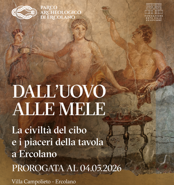 La mostra “Dall’uovo alle mele. La civiltà del cibo e i piaceri della tavola a Ercolano” viene prorogata fino al 4 maggio 2026. Regalatevi un tuffo nella storia tra cibo, cultura e scorci paesaggistici mozzafiato.