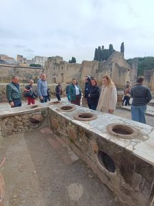 Nel corso delle due giornate si sono svolti sopralluoghi presso alcune delle principali aree del sito, tra cui le Terme Suburbane, il criptoportico e i cunicoli del lato est della piscina della palestra, nonché l’area dei cosiddetti “Scavi Nuovi” – Villa dei Papiri. Gli incontri hanno rappresentato un’importante occasione di confronto tecnico e scientifico sui temi della conservazione programmata, della gestione del rischio, dell’applicazione di strumenti GIS alla gestione del sito, delle strategie di gestione dei visitatori e delle iniziative di coinvolgimento del territorio.